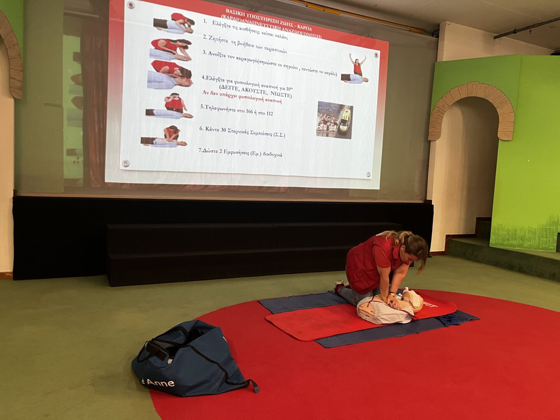 Στο σεμινάριο συμμετείχαν γονείς και μαθητές του Λυκείου του σχολείου μας, οι οποίοι εκπαιδεύτηκαν από ειδική εκπαιδεύτρια/διασώστρια του Ερυθρού Σταυρού στην τεχνική αντιμετώπισης θύματος με απώλεια Αισθήσεων- Θέση Ανάνηψης και στη Βασική Υποστήριξη Ζωής (ΚΑΡΠΑ).